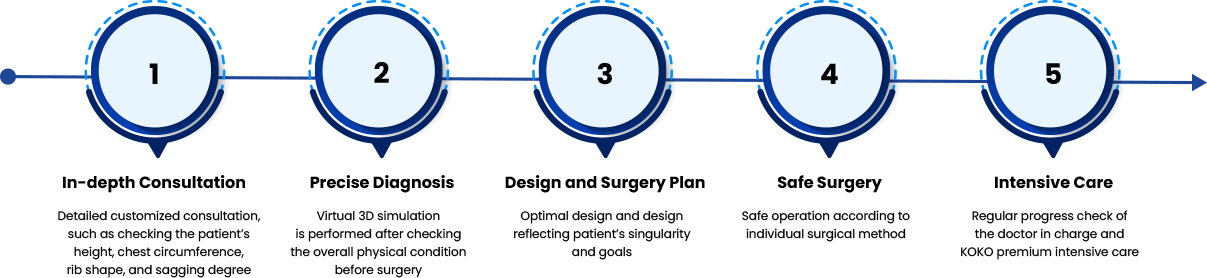 At KOKO Plastic Surgery, dedicated management department performs progress check and premium aftercare according to individual recovery speed for faster recovery and more satisfactory results after eye surgery.